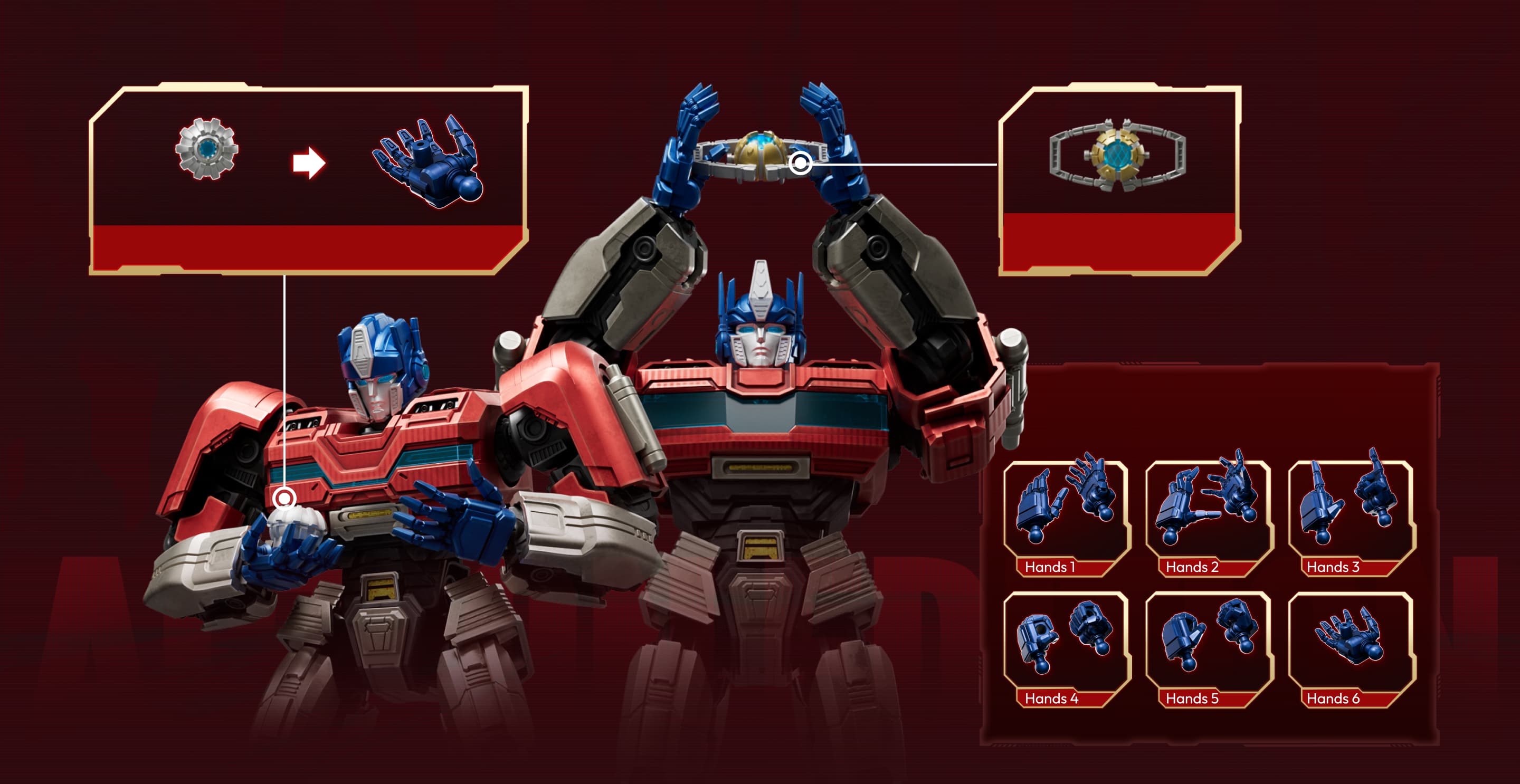 An integrated magnetic light module illuminates the eyes, ears, and Matrix of Leadership, recreating Cybertron’s cinematic glow.
