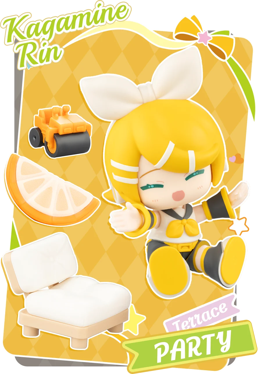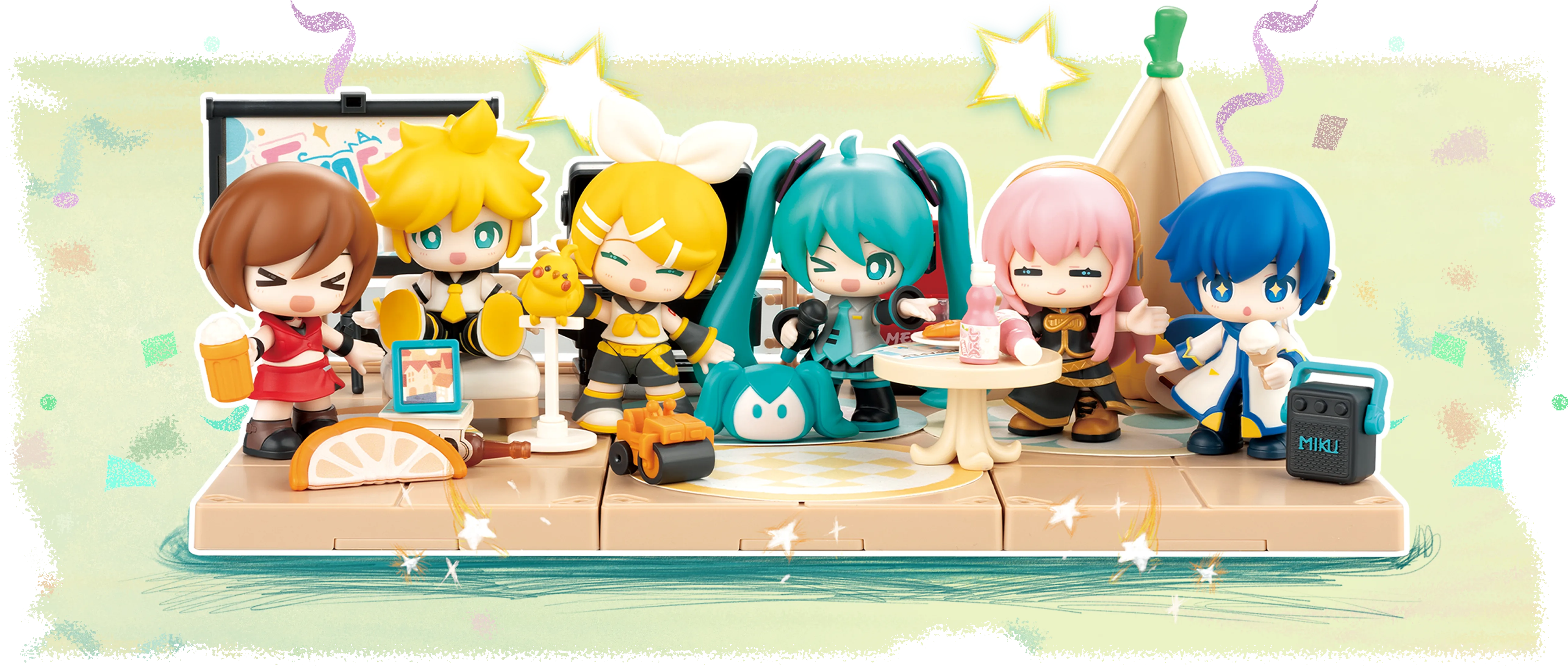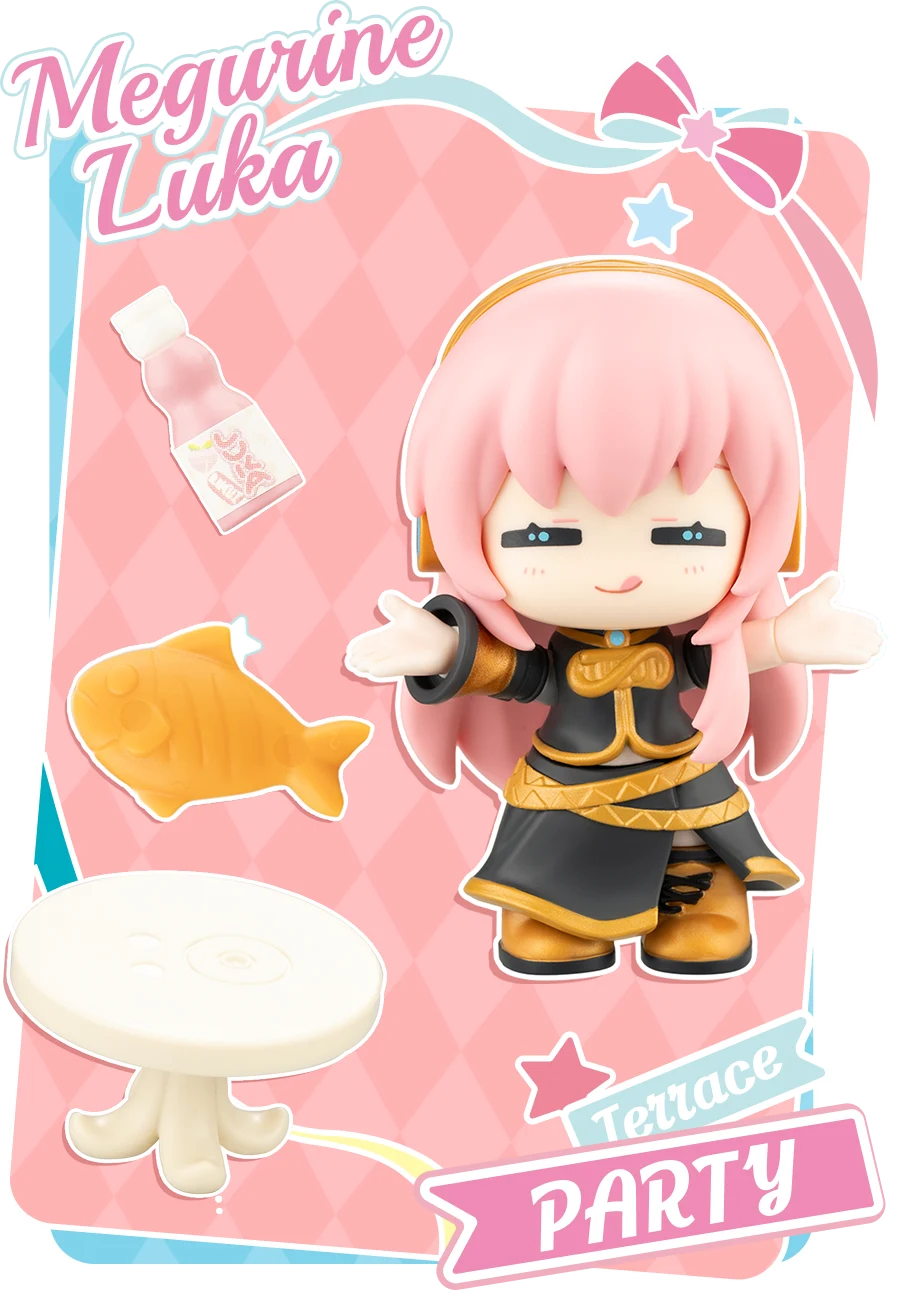 Step into the fun with the Hatsune Miku DaaVibe 01 Terrace Party! This officially licensed set includes Hatsune Miku, Kagamine Rin, Kagamine Len, Megurine Luka, MEIKO and KAITO, each with unique accessories. With flexible, multi-jointed designs, these characters offer endless posing possibilities.