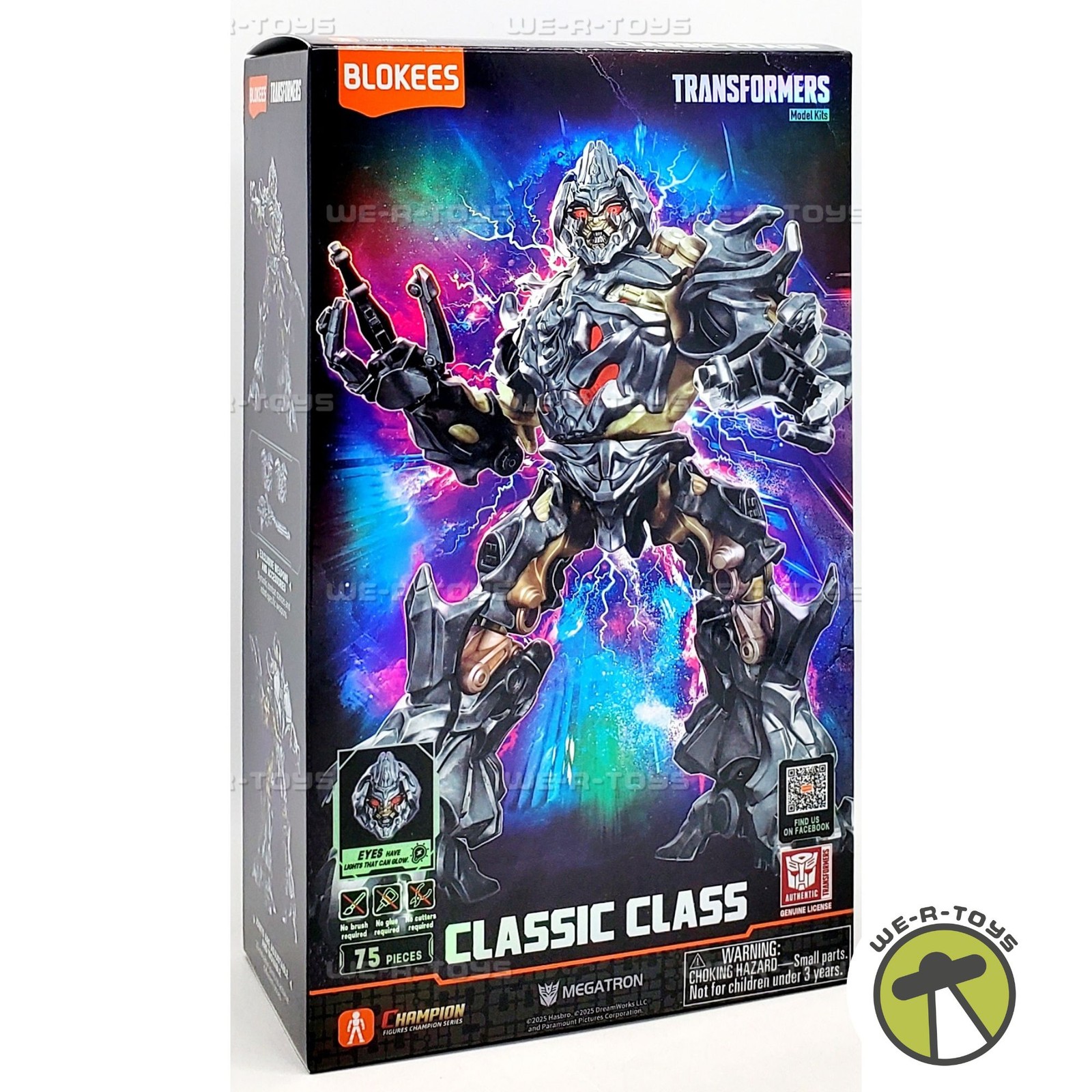 Build the fierce Decepticon Leader as seen in the film Transformers! Features LED Light inside chest, shake activated! Comes with display base!