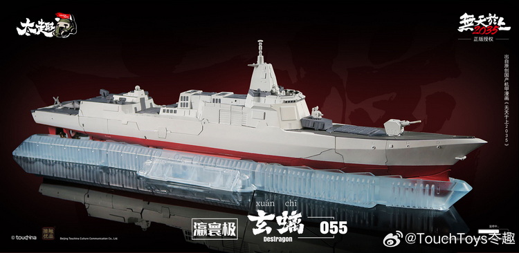 The Destragon Xuanchi Type 055 from Touch Toys is a modern military-inspired mecha that converts from a detailed destroyer into an imposing robot. Standing about 12 inches tall in robot mode and over 20 inches long in ship mode, it delivers strong shelf presence in either form.