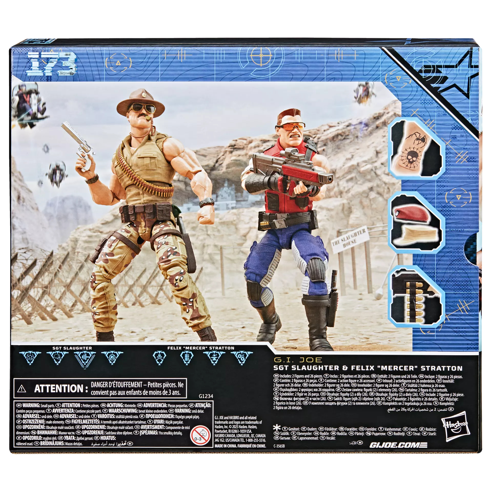 • CLASSIC SGT SLAUGHTER & FELIX "MERCER" STRATTON-INSPIRED DESIGN: Features a classic design updated to bring the G.I. Joe Drill Sergeant and Renegade from G.I. Joe: The Movie into the modern era and 26 accessory pieces inspired by the characters' rich history