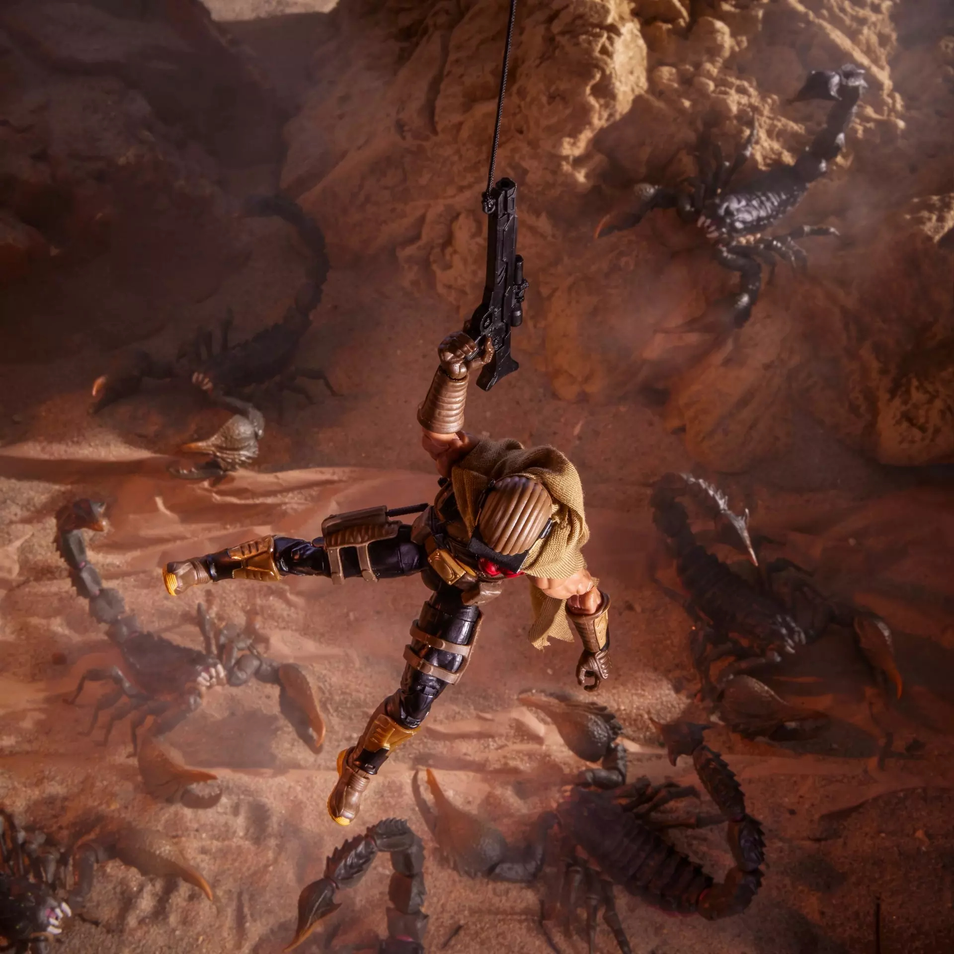 G.I. Joe is a highly skilled, on-demand, special operations force of men and women from around the globe tasked with defending the world from Cobra, a ruthless criminal organization bent on total domination. The brave members of G.I. Joe are prepared to seek out Cobra in any environment on the planet. This Cobra Desert Scorpion figure contains 12 character-inspired accessory pieces including swapable faceplate for multiple looks, backpack with connecting cord, 2 knives, grapple launcher with removable hook and attached line, scorpion prod, 2 claws, and weapon accessories; plus softgoods cape and helmet skirt. SKRP10N-25 is a fully articulated colossal pet with massive claw pincers and unattached tail piece.