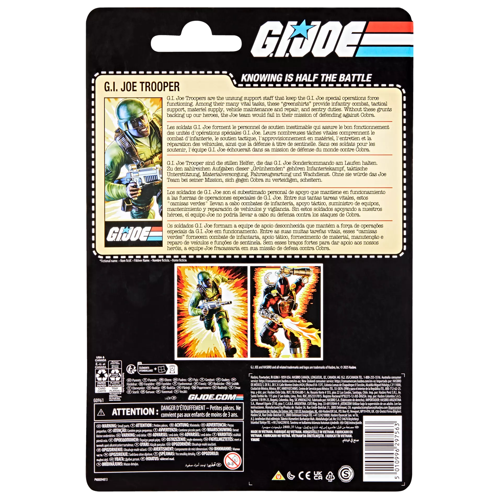 CLASSIC-CARDBACK INSPIRED PACKAGING: This G.I. Joe Trooper comes on a blister pack card with design and character art inspired by the classic A Real American Hero figure line that is perfect for display