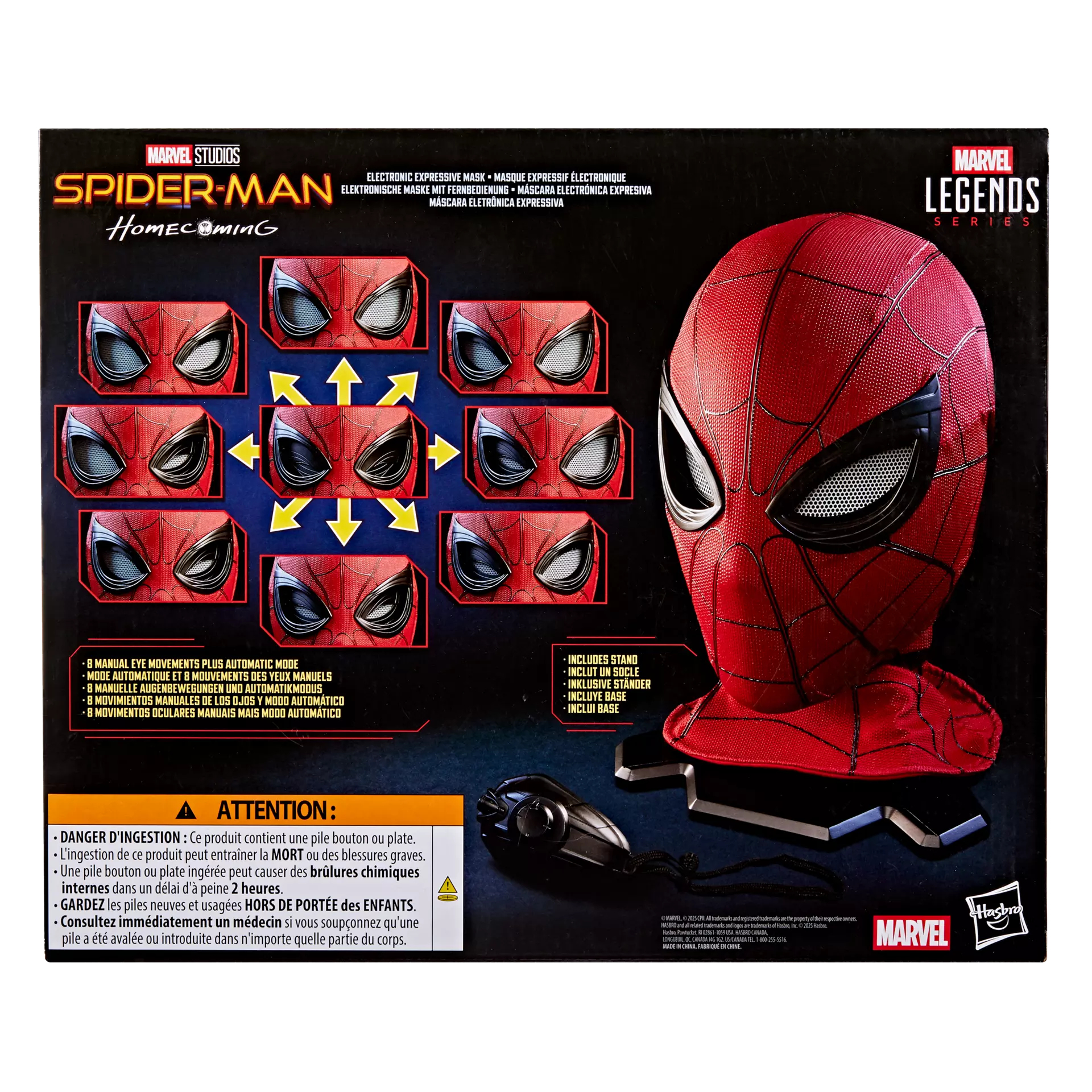 Roleplay helmet with premium design and deco features a soft silicone texture and electronic eye movements. Great for displaying in fans' collections or wearing with a Spider-Man Halloween costume or Marvel cosplay. Bring movie-inspired scene to life with Marvel Legends action figures, roleplay gear, and collectibles. (Each sold separately. Subject to availability.)