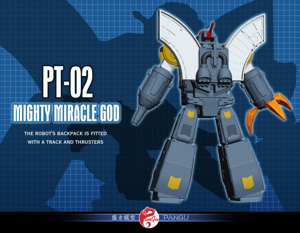 Pangu Toys presents PT-02, Mighty Miracle God, a legends scale homage to G1 Omega Supreme!