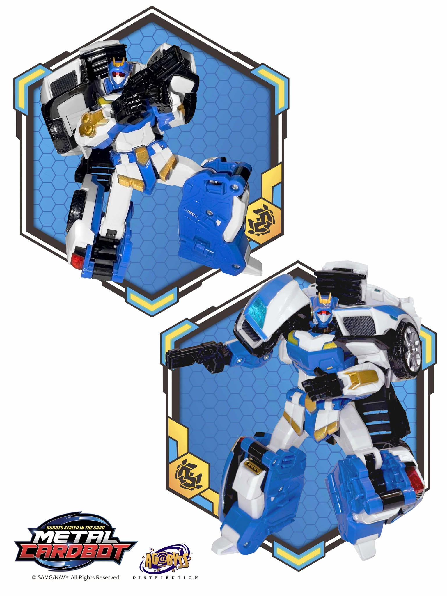 Blue Star - 6.5 Inches (16.5CM) in robot mode Includes - Figure - Handheld blaster - Blue Star Metal Card transforms into Justice Guantlet