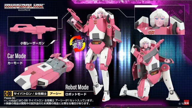 - MISSING LINK C-08 ARCEE: Based on Arcee's look from The Transformers: The Movie and the never-released prototype toy from the 80s, this Transformers Missing Link figure is an authentic Takara Tomy product
